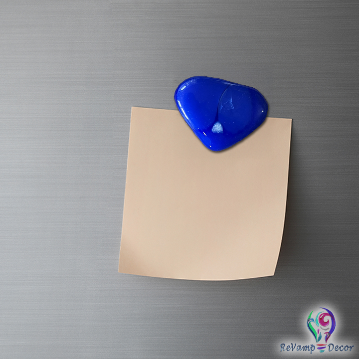 Minden darab egy külön kis alkotás: a magas hőmérsékleten összeolvasztott színes üvegdarabokból születik meg az egyedi mintázat, amelyet soha nem lehet kétszer pontosan ugyanúgy elkészíteni – így minden mágnes megismételhetetlen. A sötétkék árnyalatok a mélységet és a nyugalmat idézik, a fényben pedig különleges, sejtelmes fényjátékot hoznak létre. A hátoldalon erős mágnes gondoskodik a stabil tartásról.